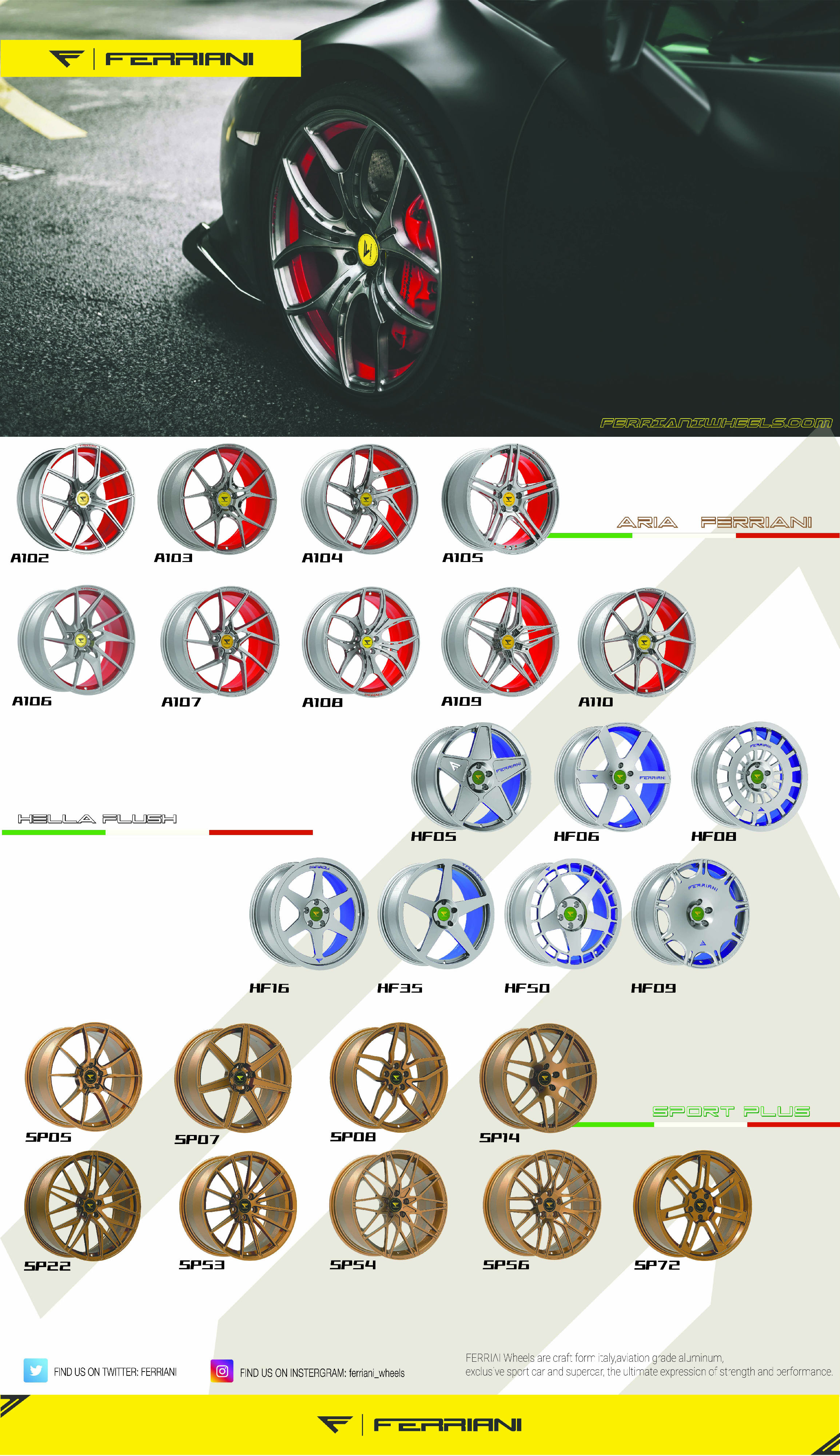 FERRIANI 2013年创立于意大利,位于艾米利亚-罗马涅的RONCAGLIA市,一家专注于超跑铝轮圈的设计制造公司,在欧洲市场着重针对法拉利及兰博基尼、保时捷等车型的轮圈改装,并致力于研发欧洲车系气动低趴车型改装适配轮圈,2017年底开拓中国市场,签约苏州禹禾行为中方代理商。